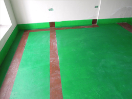 對(duì)地板的基礎(chǔ)砂漿表面進(jìn)行防潮、防塵處理,涂刷綠色環(huán)保地保2遍。